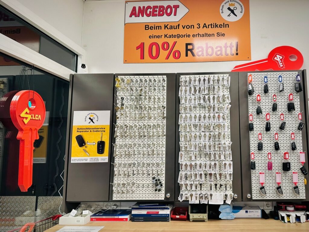 Schlüssel verloren oder abgebrochen? Kein Problem – wir fertigen Ersatzschlüssel schnell und präzise an. Außerdem beraten wir Sie zu Schlössern, Schließanlagen und Sicherheitstechnik.